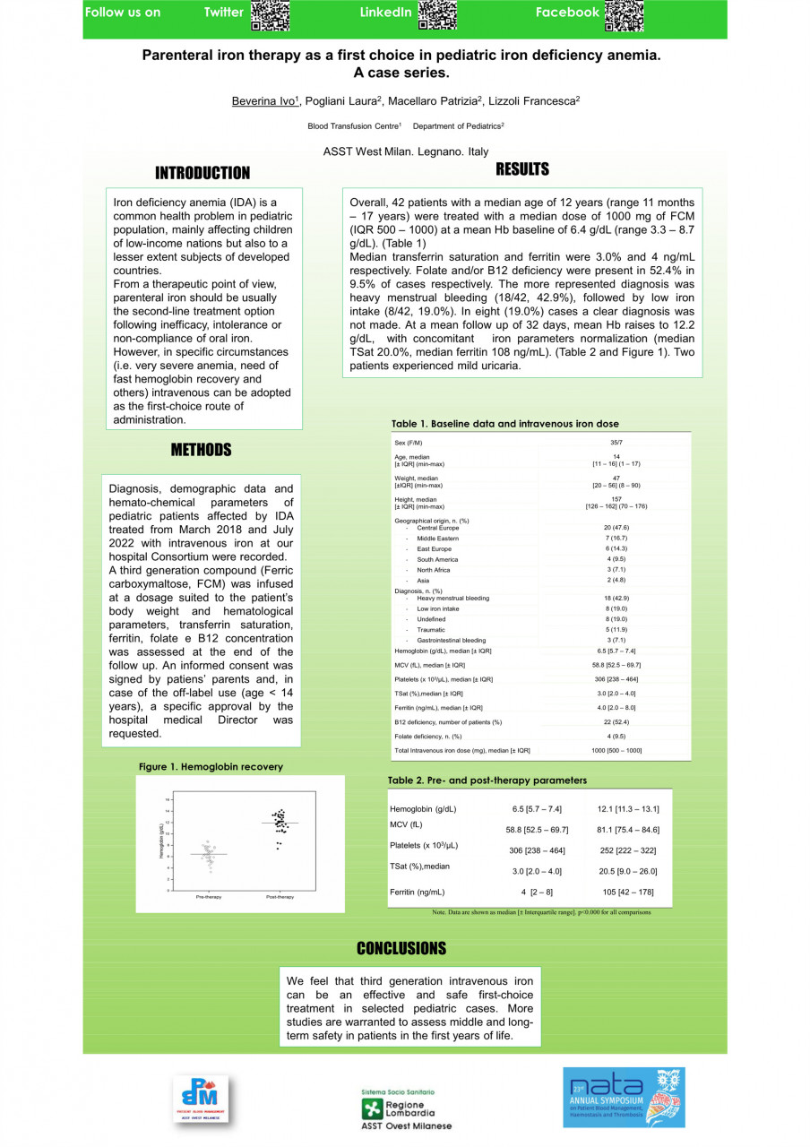 Parenteral iron therapy as a first choice in pediatric iron deficiency anemia. A case series. (61)