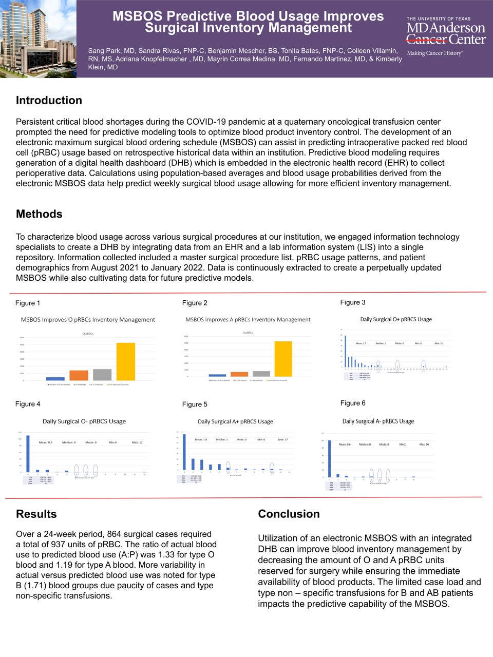 Msbos predictive blood usage improves surgical inventory management