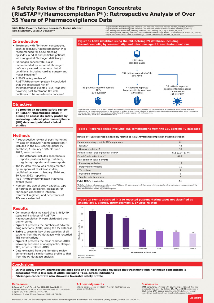 A safety review of the fibrinogen concentrate (RiaSTAP®/Haemocomplettan P®): Retrospective analysis of over 35 years of pharmacovigilance data (54)