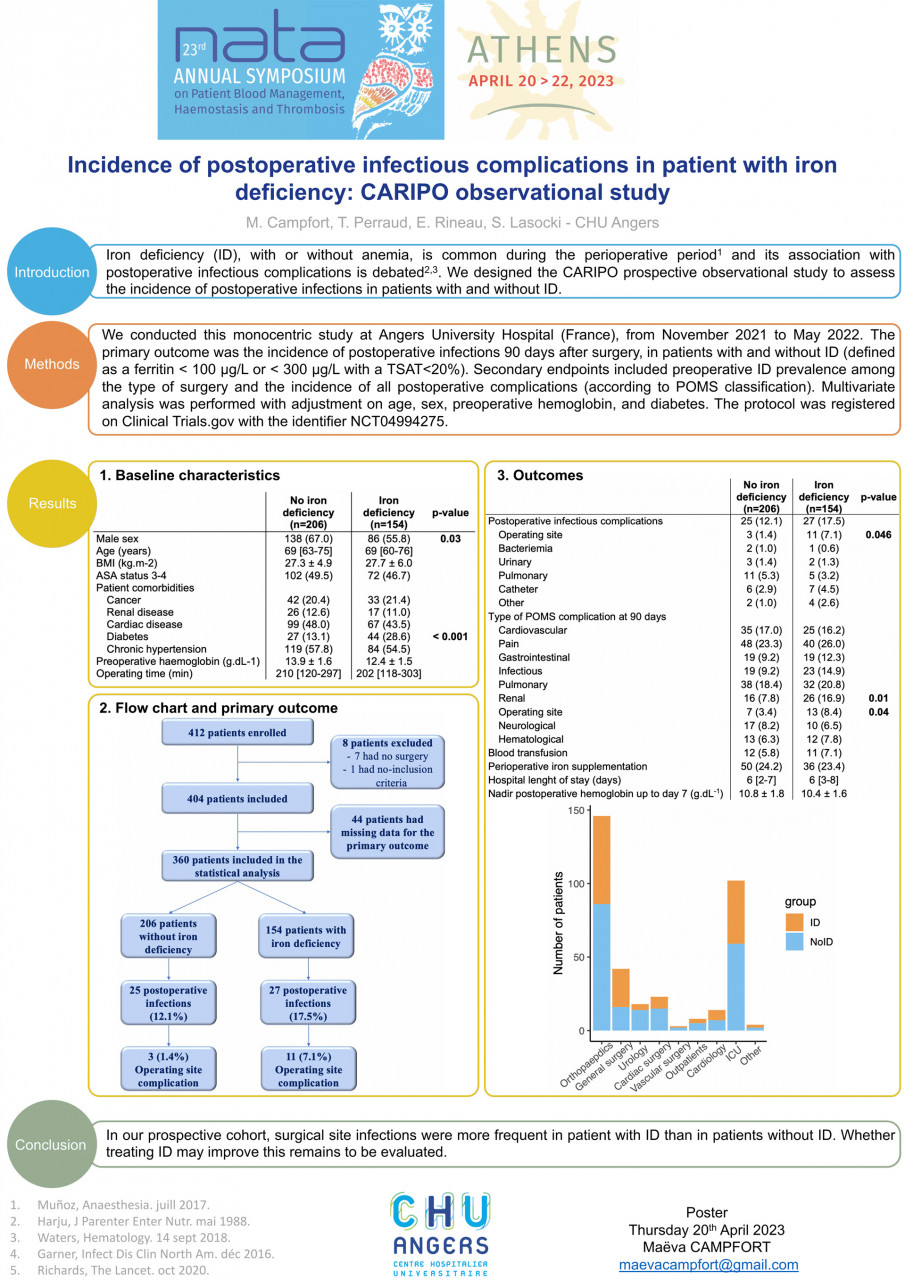 Incidence of postoperative infectious complications in patient with iron deficiency: CARIPO observational study (2)