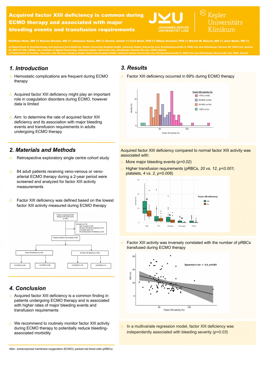 Acquired factor XIII deficiency is common during ECMO therapy and associated with major bleeding events and transfusion requirements (49)